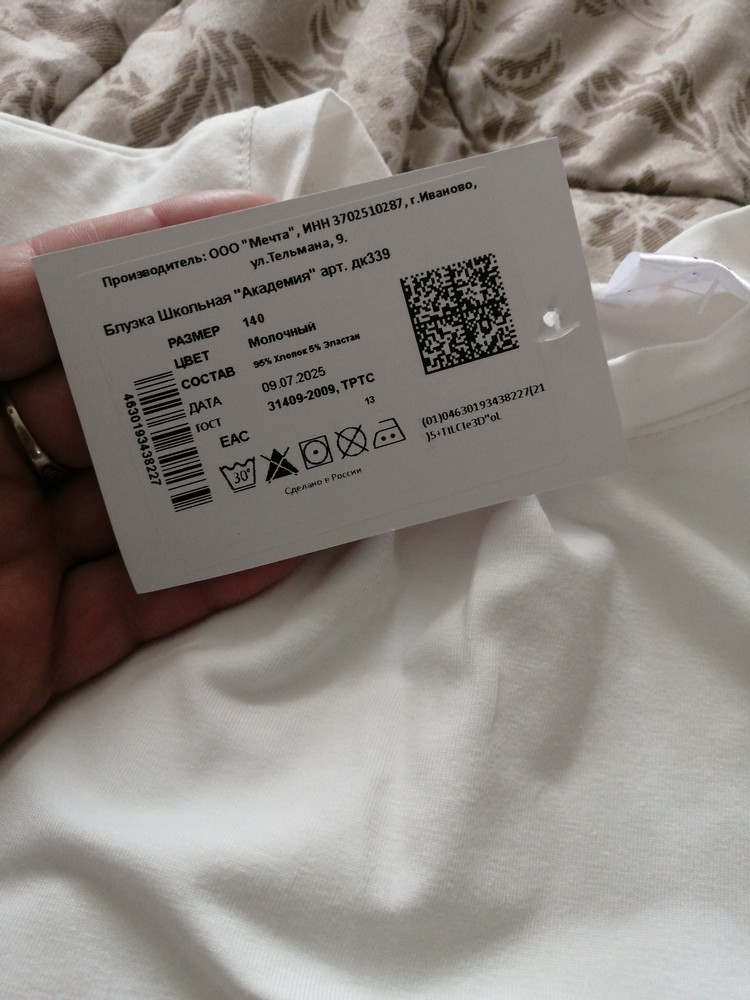 Классная блузка!Хлопок, приятная к телу!Все швы ровные, нитки нигде не торчат.Рекомендую к покупке!