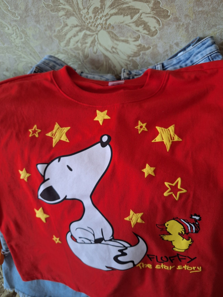Футболка очень красивая, яркая, размеру соответствует, оверсайз, для толстушек как раз. Производитель г.Иваново. Трикотаж лёгкий, качественный. Брала на рост 152.