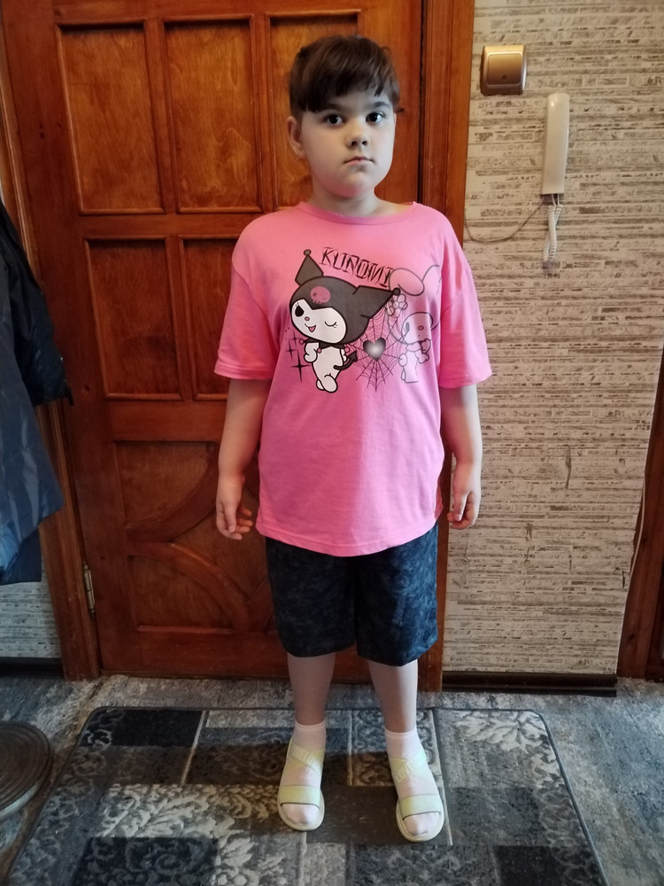 Свободный крой футболки и современный силуэт позволяют костюму выглядеть модно и непринуждённо. Он отлично сочетается с другой одеждой, подходит для пляжа, поездок и повседневных дел, а эффект варёнки и яркий принт Куроми делают его любимой вещью в гардеробе.
