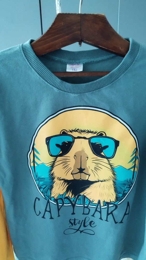 Ткань очень тонкая, горловина широкая и хлипкая. Взяла только потому что сыну очень понравился принт.. После первой стирки на бережном режиме распустились нитки на горловине и рукаве. Не поддерживаю положительных отзывов!!!